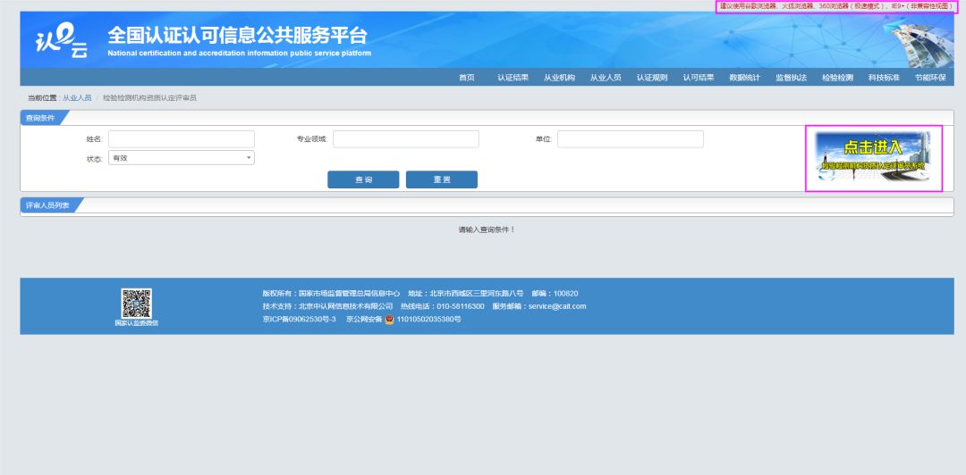 输入网址即可登陆:http://cx.cnca.cn/CertECloud/reviewPer/gointoReviewper